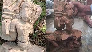 UP : संचूई गांव में घर की खुदाई में मिली पत्थर की प्राचीन मूर्ति