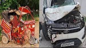 Agra : कार की टक्कर से ऑटो सवार पिता-पुत्र समेत छह की मौत, चार लोग घायल; मची चीख-पुकार