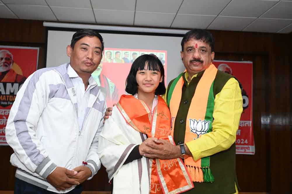 भारतीय जनता युवा मोर्चा द्वारा अयोजित नमो नव मतदाता सम्मेलन में भारतीय जनता पार्टी के प्रदेश उपाध्यक्ष एवं पूर्व महापौर माननीय श्री आलोक शर्मा जी द्वारा 11 वर्षीय दीक्षा सिंह गुरुंग को इंटरनेशनल कराटे चैंपियनशिप में दो गोल्ड मेडल जीत कर भोपाल का नाम रोशन करने पर सम्मान दिया गया और उज्जवल भविष्य की शुभकामनाएं दी ।