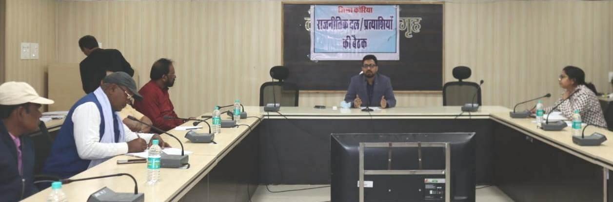 कोरिया कलेक्टोरेट सभाकक्ष में बुधवार को कलेक्टर एवं जिला निर्वाचन अधिकारी विनय कुमार लंगेह की अध्यक्षता में राजनैतिक दलों के प्रतिनिधियों के साथ बैठक सम्पन्न हुई। बैठक में आगामी लोकसभा निर्वाचन के पूर्व अर्हता तिथि 1 जनवरी 2024 को अंतिम प्रकाशन जिले के सभी 306 मतदान केन्द्रों में किया जा रहा है, प्रत्येक मतदान केन्द्रों में मतदाता सूची का प्रकाशन किया गया है, जहां सभी मतदाता अपना नाम मतदाता सूची में देख पाएंगे। 5 जनवरी 2024 को मतदाता सूची का प्रारंभिक प्रकाशन किया गया, सभी मतदाता अपनी जानकारी ऑनलाईन वोटर पोर्टल, वोटर हेल्पलाईन मोबाईल एप्प एवं बी.एल.ओ. के माध्यम से जानकारी प्राप्त कर सकते हैं।