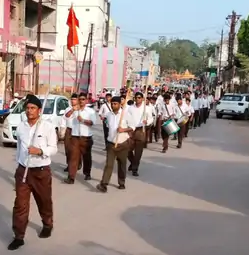 राजनांदगांव : स्वयं सेवकों ने खैरागढ़ में किया पथ संचलन
