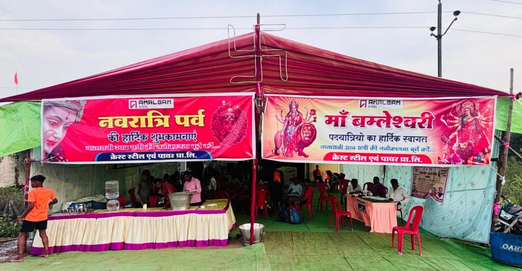 राजनांदगांव । शारदीय नवरात्रि के मौके पर डोंगरगढ़ के मां बम्लेश्वरी दर्शन के लिए आने-जाने वाले पदयात्रियों की सुविधा के लिए पदयात्री मार्ग में अंजोरा से लेकर डोंगरगढ़ तक सेवा पंडाल लगाए गए है।