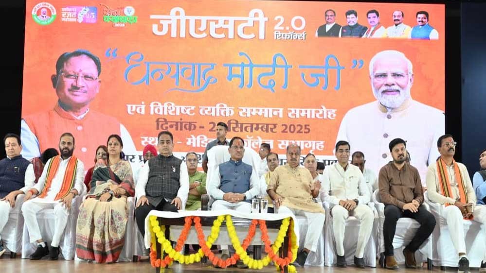 मुख्यमंत्री विष्णुदेव साय आज राजधानी रायपुर के मेडिकल कॉलेज सभागार में आयोजित जीएसटी 2.0 रिफॉर्म्स "धन्यवाद मोदी जी" कार्यक्रम में शामिल हुए। मुख्यमंत्री साय ने कहा कि जीएसटी रिफॉर्म्स से आर्थिक क्षेत्र में ऐतिहासिक बदलाव हुए हैं, जिनका सीधा लाभ आम जनता को मिल रहा है। जीएसटी दरों में कटौती से 140 करोड़ देशवासियों के जीवन में खुशी आई है।