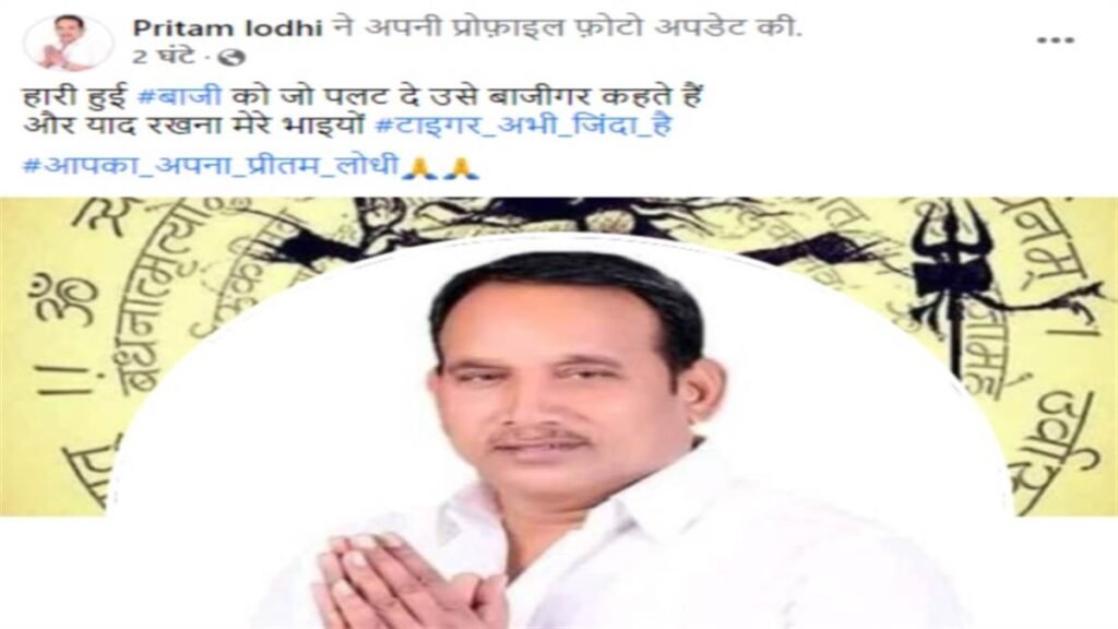 ब्राह्मण समाज को लेकर आपत्तिजनक टिप्पणी करने वाले प्रीतम लोधी को शुक्रवार को भारतीय जनता पार्टी की प्राथमिक सदस्यता से छह साल के लिए निष्कासित कर दिया गया था। इसके बाद उन्होंने शनिवार शाम इंटरनेट मीडिया पर एक पोस्ट डाली है। इसमें लिखा है कि हारी हुई बाजी को जो पलट दे, उसे बाजीगर कहते हैं। याद रखना भाइयों टाइगर अभी जिंदा है।