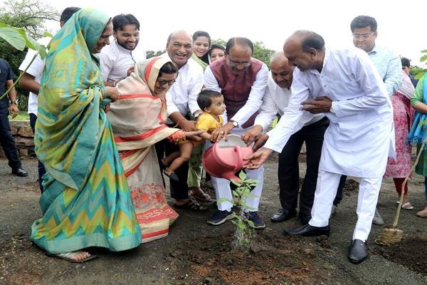 मुख्यमंत्री चौहान ने बेलपत्र, करंज और नीम के पौधे लगाए